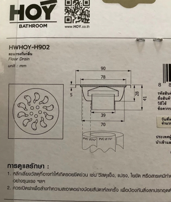 ตะแกรงกันกลิ่นสเตนเลส 201 HOY